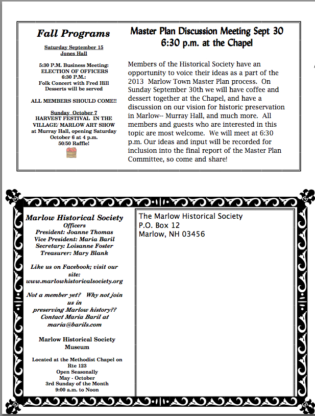 Historical Society Fall 2012 Newsletter
