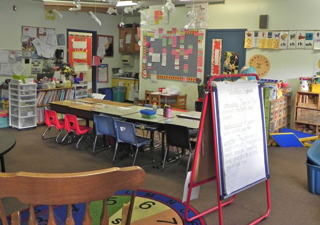 Students enter kindergarten with a wide range of abilities and experiences upon on which to build. We work daily with phonemic awareness activities through chants, poetry, read alouds, rhyming activities, and a strong emphasis on the Fundations phonics program. Students progress towards reading by working daily with letter and sound recognition (in isolation and in words), sight words, and a variety of games. Morning meeting is a place where we learn to count, explore the calendar, and learn from our community of peers, in a safe, comfortable environment.